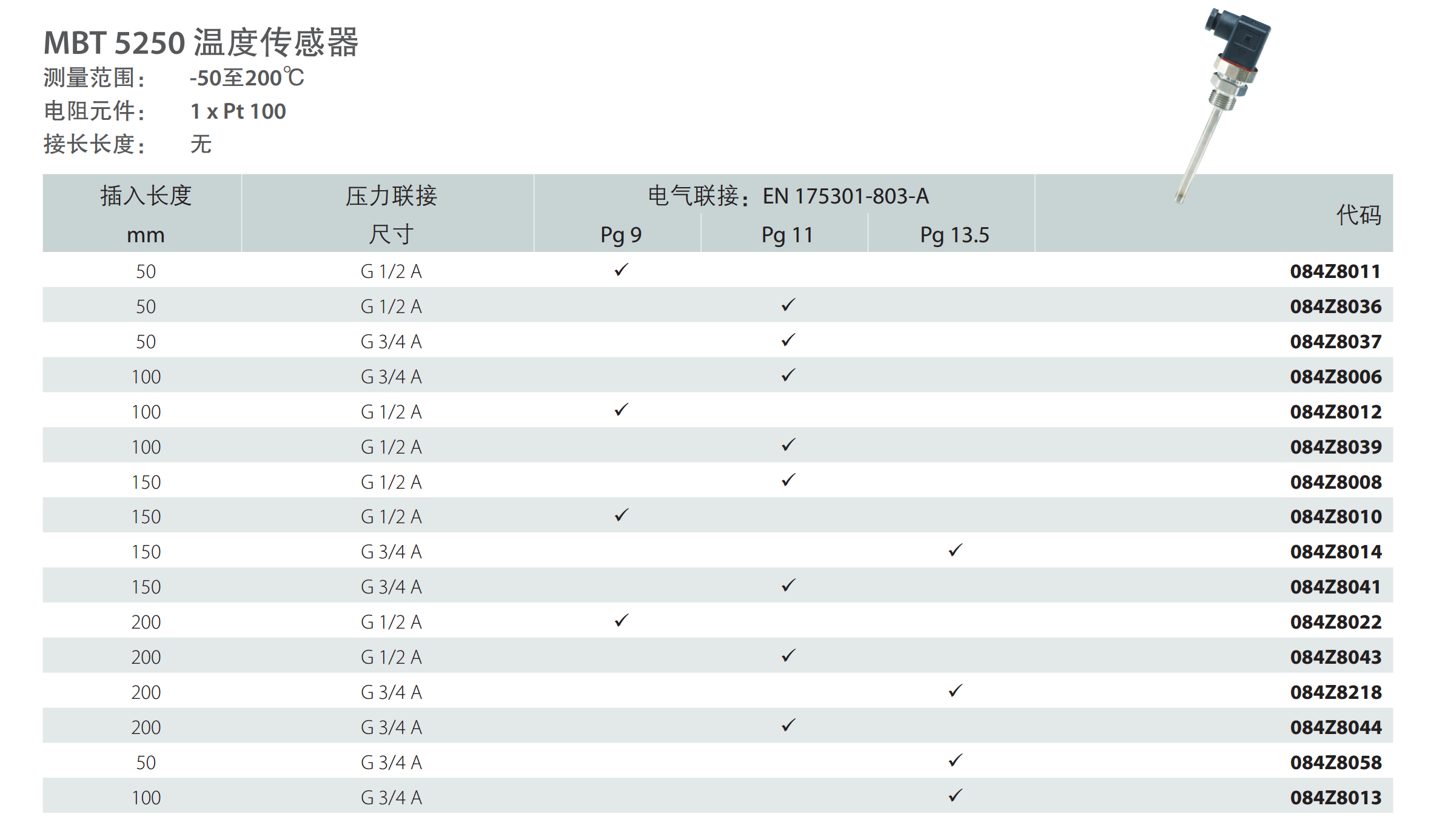 這款溫度傳感器基于標準化的Pt100或Pt1000傳感元件,能提供可靠而準確的測量。MBT 5250可應(yīng)要求提供NTC/PTC傳感元件。